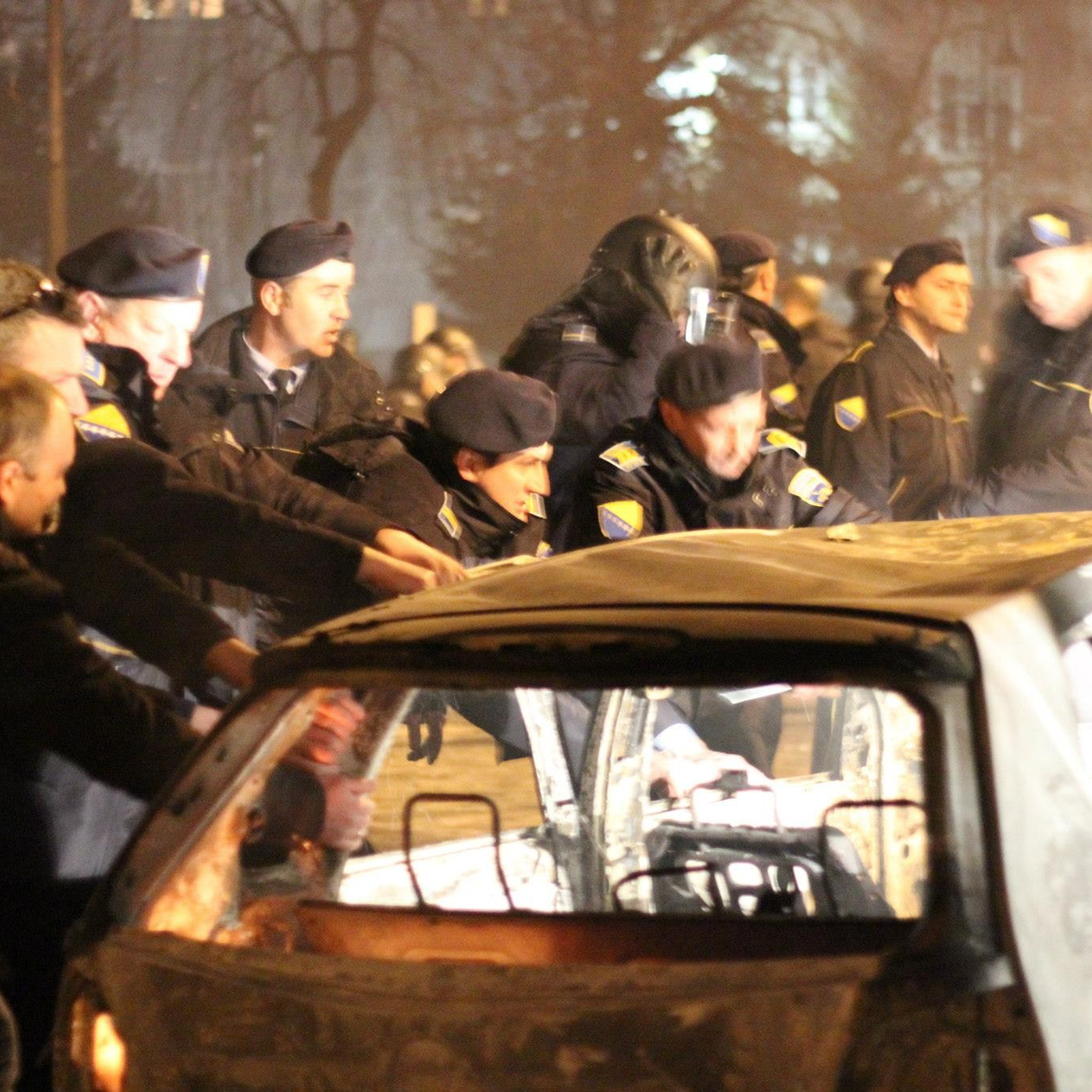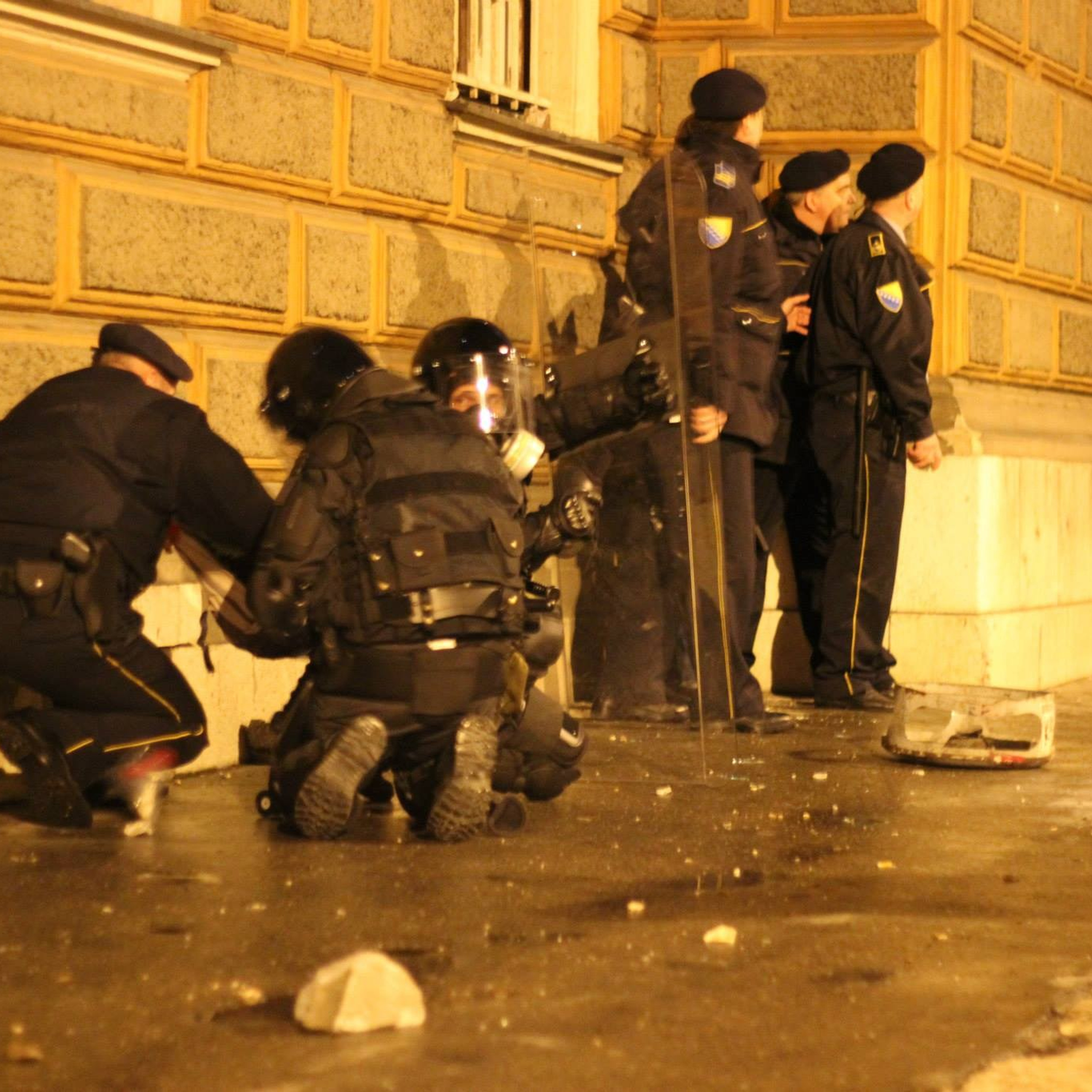 Tada još nisam bio fotograf u pravom smislu te riječi — bio sam, realno, strogi amater sa aparatom i puno više želje nego znanja. Ipak, tog dana nisam razmišljao kao početnik. Razmišljao sam instinktivno. Ispred Predsjedništva Bosne i Hercegovine prizor je bio težak — dim, razbijeni prozori, policijski kordon s jedne strane i masa s druge. A onda je počelo. Kamenje, cigle, baklje, zvukovi koji se sudaraju i trenutak u kojem shvatiš da stojiš tačno između dvije strane. I tada sam prvi put osjetio nešto što me iznenadilo — nije bilo straha, samo fokus. Kada je policija krenula naprijed, krenuo sam i ja iza njih, bez razmišljanja, dok su predmeti letjeli iznad mene, a ljudi padali i ustajali u istom ritmu haosa.