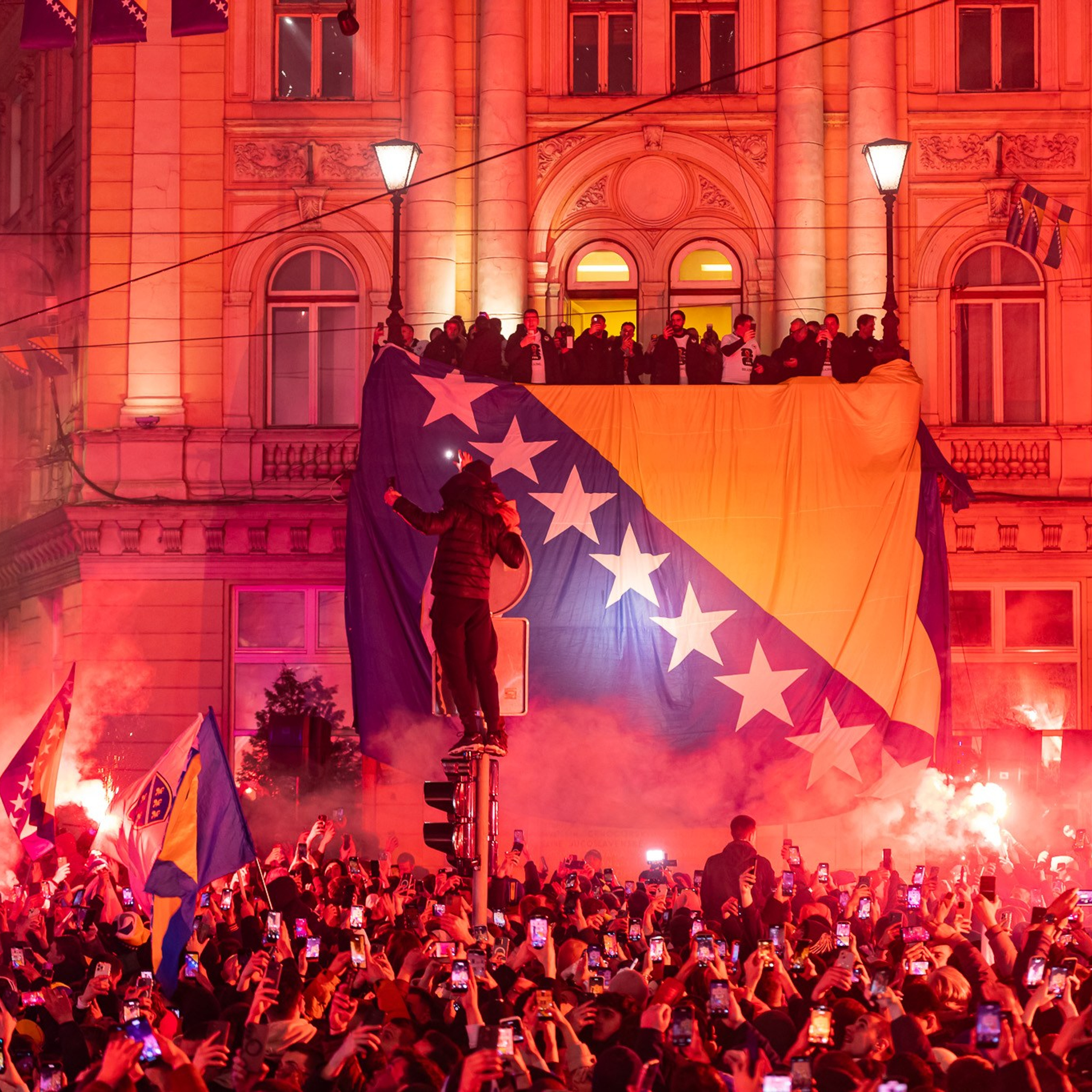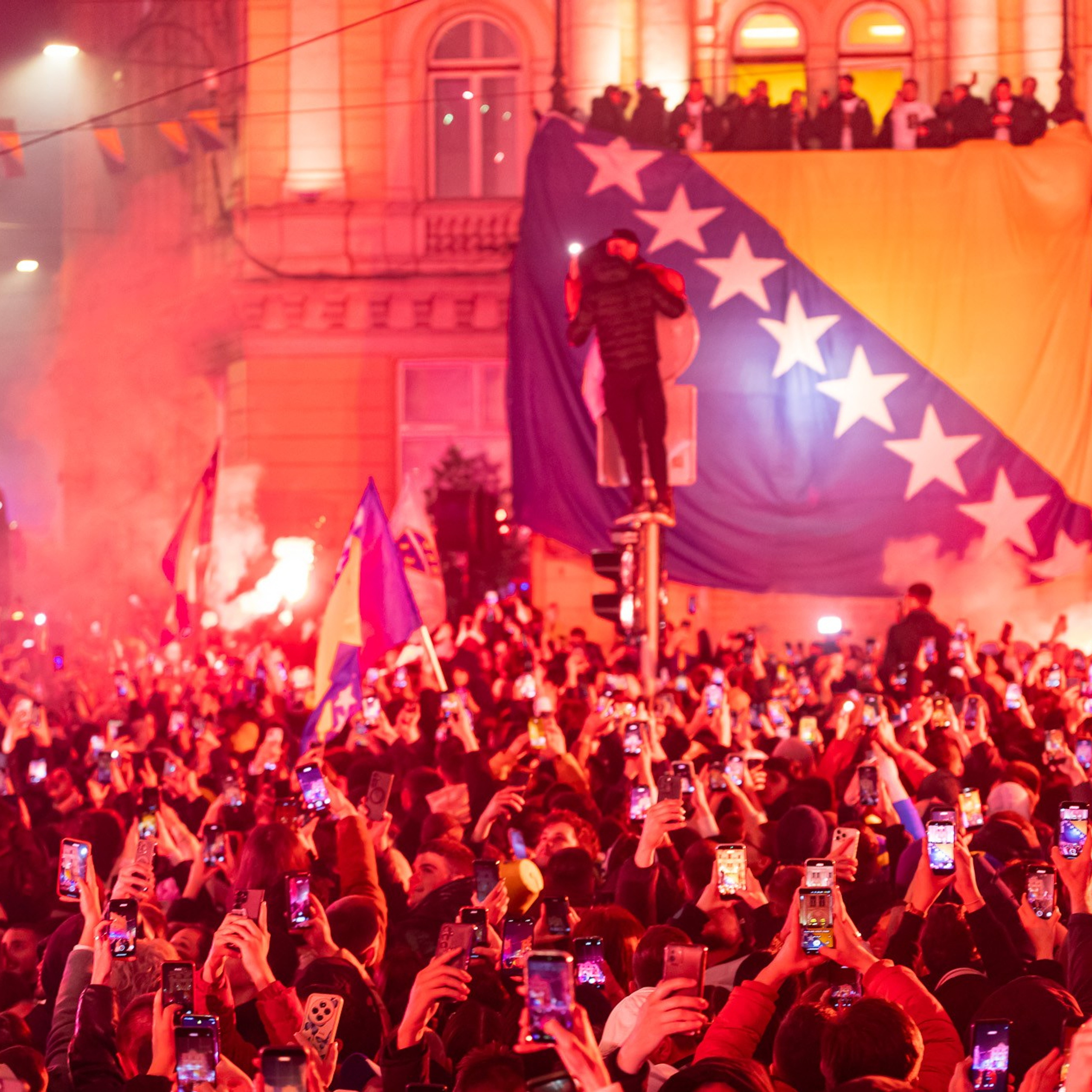 Godinama kasnije, opet stojim na ulici. Ista ulica, ali drugačiji trenutak. Sarajevo ovaj put ne gori — Sarajevo slavi. Hiljade ljudi, zastave, baklje, ali drugačija energija, ista snaga. Plasman Bosne i Hercegovine na Svjetsko prvenstvo 2026 pretvorio je grad u jedno tijelo koje diše zajedno. I opet sam tu, sa aparatom u rukama, ali sa nešto više iskustva, više strpljenja i možda malo jasnijim osjećajem za trenutak. I dalje učim, i dalje tražim, ali sada više obraćam pažnju na svjetlo, kadar i ono što se dešava između kadrova.